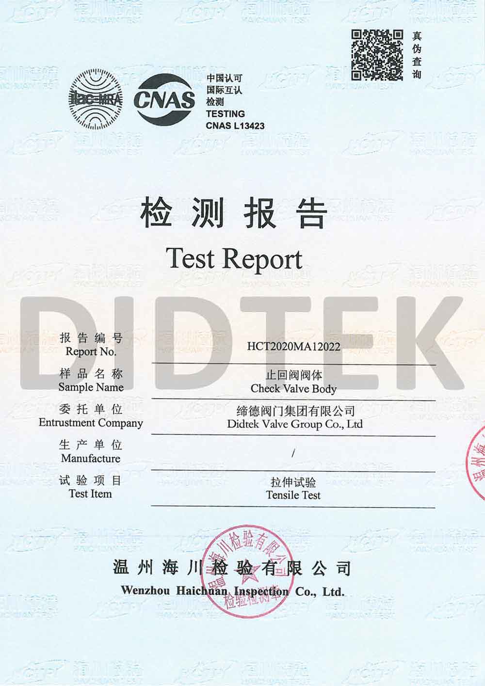 Certificado de teste de válvula de retenção ACC para en10204.3 3.1
